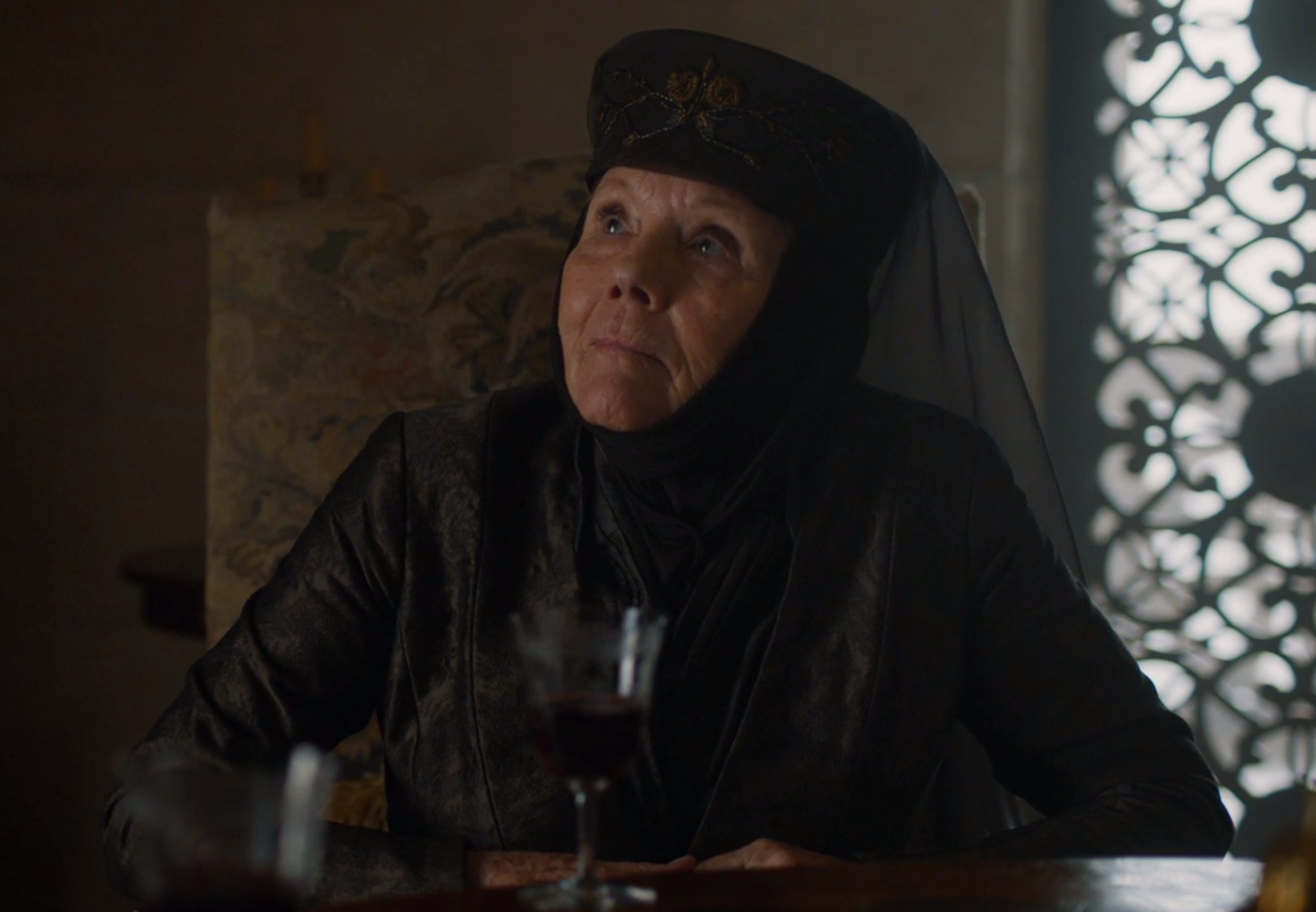 Meanwhile, Olenna's death I actually cared a lot about because the old woman is easily one of the coolest characters in the show, this fearless old lady who's a master at politics. Her death is one that's honestly pretty obvious if we're betting, I just thought she would be allowed to do more stuff before it. We did get a pretty cool exit scene about Olenna, reflecting briefly about her life and facing Jaime unflinchingly. Even near death, she remains unfazed about everything, and still acts as that cool grandma even to Jaime. She's accepting of her death, that she's lost, and has a fun bit of conversation with Jaime about the qualities of the poison she took... before as one last act of spite, recalls how horribly Joffrey died and finally revealing her hand as the mastermind that murdered the "little cunt", as the Queen of Thorns puts it so delicately. Jaime might be the one of the only sane person in the show at this point, but while he's done a fair bit of good in his time, the show's probably still going to punish him for all the dickery he did in the first season and the timeline before it. It's also a magnificent, low-key exit for Olenna (even if, again, I'd like to see her in the show more), still not taking shit from any person in Westeros, and accepting her painless death with dignity while twisting the knife into Cersei's heart even more.