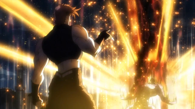 Of course, Joseph ends up claiming victory and sets ACDC ablaze with Hamon, burning his body up and striking a victory pose. It's a neat enough battle that shows just how far Joseph has gone in hamon manipulation, while at the same time keeps his focus as a guile hero intact. Of course, silly old Joseph really should've noticed a gigantic brain and veins that is taking a ride on his back.
