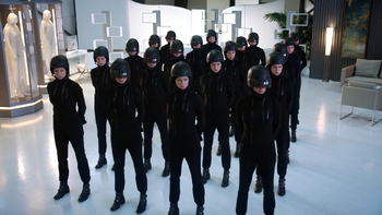 It's definitely a very interesting twist, as the title of the episode and the well-executed visit to Ava's actor parents seemed to imply that she's merely a robot, but when our Ava follows Sara to 2213 and finds out that she's not that special, but just one of many mass-produced clone-robot identical beings, she kind of breaks down. A simple speech about how "you're special to me!" is all that's needed to bring her back, though, After a fight against a literal army of Avas, they end up returning to the Waverider, intent on hunting down Rip Hunter and asking him some very pointed questions.