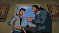 If it's not already clear that the Blue Beetle's going to be the huge focus among the new faces of this season, this episode certainly seals the deal. When Jaime's buddy Tye Longshadow calls him about leaving town and subsequently disappears when he gets kidnapped by mysterious parties, Jaime ends up going onto an investigation storyline as he goes around and talks to Tye's mother and her boyfriend Maurice. Tye has clearly butted heads with Maurice a lot of times before, and the episode gives an eerily realistic portrayal of a meek, subservient spouse in Tye's mom who keeps trying to justify that Maurice "has his good days" and clearly afraid to do anything to upset her boyfriend.Yes, Jaime's story ends up leading nowhere as all the talk from Tye's grandfather Holling about how Maurice is jealous and wants to be tribe chief ends up being a red herring. The worst that Maurice does isn't beating up or killing his girlfriend's son, but merely pirating DVD's and video games. Jaime ends the episode no closer to finding where Tye Lonsghadow has disappeared beyond crossing off a suspect, but the episode's focus is more to put Jaime Reyes in a more prominent light and give him some solo story time. We also learn that the Scarab has way, way more capabilities than just cannons, wings and staple-guns. We see that it can transform into a lockpick and it can scan for people telling the truth. There's a lot of neat buildup in this episode, but I don't think any of them is more important than the Jaime Reyes stuff considering how big of a player he'll eventually become in this season.