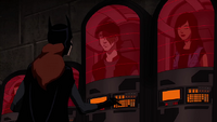 Again, it's an episode that's mostly split between two storylines. In the main action story, Nightwing sends an all-girl squad to go to Bialya, a location we've visited multiple times in the first season. While Nightwing justifies the all-female squad by noting that they're immune to Queen Bee's pheromones, Batgirl makes a hilarious crack about how Nightwing would never have to justify an all-male squad., causing the team leader to get intensely flustered and sign off. That was actually funny. The Bialyan storyline has a distinct focus on one of our newer members, Wonder Girl, but also has a great tie-in to the Blue Beetle storyline. Or rather, Jaime Reyes's story, because his spotlight screentime in this episode is devoted to his civilian life as he tries to figure out his friend's disappearance -- the audience ends up realizing that Tye Longshadow's disappearance is actually tied to the strange human trafficking ring that the Light agents are doing, which, in turn, is also tied to the mysterious "Partner".By and by, while it is somewhat tempting to dismiss all of these "oh, it's connected to the enigmatic Partner" end-of-episode revelations as being similar to the "it's all connected to the Light!" bits from season one, I felt that Invasion's approach and seeding out the various plotlines connected to the Partner from the frame-job with the League, the Black Manta alliance, and now the human trafficking, are all handled a lot better with more immediate follow-up in subsequent episodes.