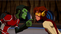 Some characters, like Bumblebee and Batgirl, could probably have their origin stories sort of handwaved with a single line, if it's even explored at all. Some, like the first Robin or Beast Boy, only have their origins alluded to as part of an episode that does not quite focuses on the origin story, but is heavily involved in it. Some characters, though, have their origin story be relatively... convoluted so there really isn't much of an excuse but to actually bite the bullet and spend the entirety of an episode exploring their origin story.Take Bart "Impulse" Allen, for example. He's the time-travelling grandson of the second Flash, Barry Allen, who gets stranded in the past. That's certainly a storyline worth devoting an episode to, and while Young Justice drops the whole "hyper-accelerated mind" that made Impulse a bit of an unstable kid in the comics, they worked in a Terminator/Days of Future's Past storyline into Impulse's time travel antics. What initially seemed like a solitary episode focusing on the origin story of one of the new (and possibly main) characters of the second season ended up loosely tying into the main alien invasion storyline too, which is neat!