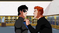 The show actually has Wally come in and tell Nightwing to his face how much he's royally fucked up. Nightwing has put a lot of faith in Kaldur'ahm being their double agent, but you can't blame Wally for being ballistic -- it's his girlfriend that's risking her neck hanging out right next to Kaldur'ahm, and if he should actually go evil, there's no telling if Artemis would actually be stabbed through the heart for real. As Wally points out, all of the tragedies that Kaldur'ahm used to justify his turn to evil (to both the audience and the Light, mind you) are definitely real and huge stress-causers. Kaldur'ahm truly did lose Tula, and truly did find that Black Manta is his father. And even with the knowledge that Kaldur'ahm is acting as a double-agent, he did allow and cause the kidnapping of now three members of the Team. And he blew up the base. Nightwing tries to justify this by saying that Kaldur'ahm handed him a tracker to find Lagoon Boy during the scuffle, but at the same time, just how much are they willing to trust Kaldur'ahm after apparently going so much further? Wally posits the theory that Kaldur'ahm might just be a triple agent, which, well, seems to be a pretty dumb writing move if it's the case, but the perceptions of the characters in-universe would definitely be completely different. After all, season one's climax did avoid a whole lot of trouble thanks to them deciding not to keep secrets from each other, and this double-agent fake-death fake-evil operation has gone off the rails and is definitely far less forgiveable than secrets like "my dad's Sportsmaster" or "I'm actually a white martian".