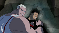 Oh, and apparently if Nightwing was just a wee bit slower with his escape, he, Superboy, Wolf and the Sphere would've probably died in the explosion. Mal Duncan shows up to rescue the gang after his little side-story (which we'll cover later), but even then the Sphere sinks into the bottom of the ocean to heal after rescuing to the ocean. Again, while no one has died yet (Artemis's fake death notwithstanding), it's pretty damning of Kaldur'ahm to everyone involved.And while we, the audience, know that Kaldur'ahm is a double agent, the events of this episode pretty much seals the deal that he's extremely committed to the role. The destruction of Mt. Justice might just be the destruction of the base, but the slow pan as each sub-location gets torn apart and ripped straight to hell is pretty damn somber and shocking. There's a reason why attacking the sanctity of a superhero's base is a trope -- it's pretty damn effective at ramping up the stakes. Only this time around the villain invading the superhero's lair isn't a Lex Luthor or a Joker. It's Kaldur'ahm, one of our heroes, in deep cover. And how much of this 'cover' is worth all the collateral damage and stress that the other heroes got? As Nightwing's near-sinking shows in this episode, the Team's leader is barely in control.