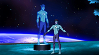 Meanwhile, as Black Beetle wants to wage war on Earth, the Team continues their streak from last episode, and the entire force of the Team is already attacking the Reach's mothership. The fight scenes themselves isn't actually that bad, and I do like the fast zipping through the monitor with some blink-and-you'll-miss-it scenes of the Team kicking ass. Black Beetle finally faces off against Aqualad, Blue Beetle and Green Beetle, and it's an appropriate trio to face off. Both Beetles have suffered under the Reach's manipulation and mind-control, and last episode established Aqualad and Black Beetle as having some bad blood between them.
