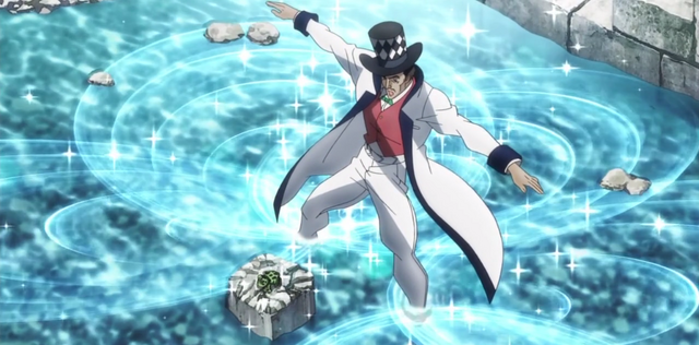 Again, I am being a bit too harsh on this fight, because it's still like the fifth episode of the series, but it's not an invalid criticism that Phantom Blood really moves slowly through not much innovation or story. Jonathan beats Bruford in this segment by figuring out that there are bubbles trapped under the water (because "it's a mining town" somehow) and uses those bubbles to unleash the Turquoise Blue Overdrive and take down Bruford.