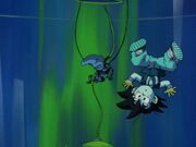 Mr. Reject actually still helps Pan in his final charge, but ends up getting electrocuted for his troubles. Giru spits Pan out with the tower's trap systems, but also gives her the dragon balls, and it's at this point that it's clear that Giru's actually still on the side of the angels, and that we're going through a very tired "he must fool his friends to fool his enemies" routine, and in this case it's Pan that's the chump.