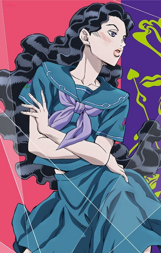 And the Stand User in question for this pair of episodes is Yamagishi Yukako, a lady from the school they go in, who's madly, deeply in love with Koichi. Why? Why not? JJBA has never really went out of its way to have any sort of meaningful attempt at telling romance, at least not until Part VIII. Yukako starts off as kind of as sweet, demure girl, before going straight-up crazy when Koichi takes too long to reply to her sudden love confession and going "DO YOU HATE ME OR DO YOU LIKE ME, WHICH IS IT?" before storming off, with Koichi confused by the encounter, as well as a fuck-ton of hair clumping up his cola.