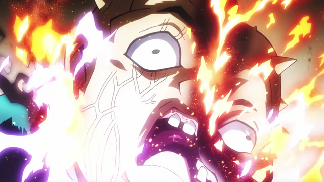 And all the while, the audience is under the safe misconception that, hey, we've seen grievous injuries in JoJo before, and Crazy Diamond have been seen reverting ridiculous amounts of damage, so Shigechi's split-up face and wounds can easily be cured as long as Shigechi can get to Josuke, right? And that's the main goal of this episode. As Shigechi just struggles and resolves to protect the city and his parents, he just tries his best to get to Josuke's class... only to find that Kira's already reached there, smirking from outside the class window as Shigechi touches the doorknob...