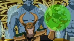 And it is a shame that the rest of the episode sort of just.... fizzles out. Apparently, in the very, very short while that Thor was on Earth, Loki has arrived with an army of frost giants and conquered Asgard. And Loki claims that he's apparently planned it all like a mastermind... so, um... he was counting that the field trip that was visiting the museum where he placed a booby-trapped Nordic stone was going to have, among them, Danny Rand, who can specifically read the runes despite being trained halfway across the world in K'un Lun, and read it out loud, and that the field trip also has someone who has Thor on speed dial? Okay then.