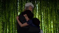 Most interestingly, though, is the follow-up of a plotline that is one of the more memorable character retoolings in Season One, where this series' incarnation of Dr. Fate is actually the 'fused' form of Nabu and Giovanni Zatara. Nabu basically possesses Zatara's body, and while the show does make it clear that it's a horrible thing, and Zatara's kinda treated as sorta-dead, the emotions all come back when we witness the fact that apparently Zatanna has a standing deal with Nabu to... spend one hour per year with Zatara (who has aged tremendously, too). Which... poor, poor Zatanna is clearly heartbroken, and all the voice actors and animation team involved actually manage to portray this scene amazingly well without overplaying the drama.Also, Nabu's a huge, huge dick. An even bigger dick than Dick.