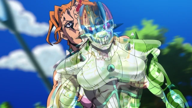 Meanwhile, the adults -- Giorno, Bucciarati and Abbacchio -- are trying to figure out if Zucchero is working with a partner, and just how their situation is at the moment. Team Bucciarati has been taking a roundabout way to Capri, meaning that Zucchero's unseen partner would have been able to arrive there before them. And with no way of really guessing or understanding what Zucchero's partner's Stand is, it's very interesting just how afraid and cautious the Bucciarati team is, a nice, sharp contrast to the more gung-ho attitude that the Part 3 or 4 cast have.I also do like the fact that while Abbacchio has had a better opinion of Giorno, fighting together against a common enemy doesn't make him suddenly BFF's forever, and Abbacchio still demands that Giorno look away when he's using Moody Blues. After a "I have a dream" speech from Giorno and a bit of a recap of the situation, Giorno and Mista end up going off to the island using Gold Experience, and take out Zucchero's partner.