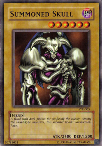 Summoned Skull is actually Yugi's original ace monster, from the stories of Yu-Gi-Oh before the card game segments. See, Yu-Gi-Oh the manga actually ran for quite some time with Yugi alternating between various twisted games before going full-on into the card game thing when they had a great merchandising partnership going on... and poor Summoned Skull ended up sort of glossed over as just one of Yugi's many monsters, with Dark Magician ending up stealing the mascot status.