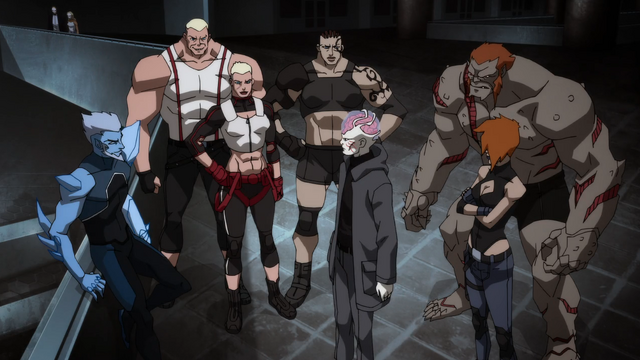 Anyway, after a pretty cool hologram segment courtesy of Nightwing's little beetle-bug drone that shows off the interior of the metahuman trafficking base, we get to see that it's being run by this dude called Mr. Bliss, and that in addition to selling metahumans, they're also having them fight in cage matches. Because... yeah, because that's somehow super-practical to have your merchandise fight and potentially break each other. But I guess these are supervillains. We also get the return of the Fearsome Five -- now calling themselves 'the Onslaught' after a Suicide Squad antagonist team, with a couple of new members.