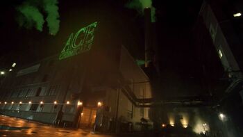 - ACE Chemicals is the location in the comics where Batman fought the 'Red Hood gang' (or a pre-Joker version of Joker, depending on the continuity) and during the struggle, Joker gets thrown into a vat of chemicals and transforms him into the madman he is now. While Jeremiah's already kinda crazy before, the fact that it takes place at Ace Chemicals and involves a struggle leading to his fall is definitely a reference to this. Ace Chemicals itself has shown up in many other adaptations of Batman.