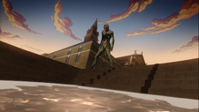Still, for now, it's still kind of all right when the novelty is still new. We get more Bucciarati brutality as King Crimson karate chops straight through his shoulders, and King Crimson (which is what we'll call the Boss until his name is spoken on-screen) gives a simple motive rant about why he wants to kill Trish -- the two of them, being parent and child, can apparently 'sense' that the are related, and King Crimson wants to eliminate any potential pitfalls. That's... that's a surprisingly weird reason, but suddenly the ladybug brooch that Bucciarati sticks on King Crimson transforms into the god damn turtle, sucking in King Crimson. Apparently Giorno "cultivated" cells from the Stand-using turtle to make his brooch? I wanna call bullshit, but that's honestly the sort of contingency that Giorno would come up with in this situation.