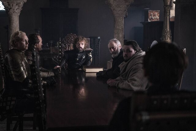 Tyrion then gives this long, long speech about how stories unite people, which is... kind of interesting? It's certainly a valid and well-done speech, even if it is a bit too meta for me, but then Tyrion talks about how the person with the best story is "Bran the Broken", who was crippled after a fall but became the Three-Eyed Raven. So at least we do get a conclusion to Bran's honestly sorta-pointless bit of becoming the Raven. I really wished we had gotten more out of it, considering how after the whole Raven thing all Bran really did was reveal Jon's heritage (which ended up being completely worthless and mostly-ignored outside of the Dany drama) and be bait for the Night King. It is, though, a wee bit sudden, and I really wished Bran has displayed a bit more of his Three-Eyed Raven powers to other characters to properly show just how the sheer extent of his storytelling.