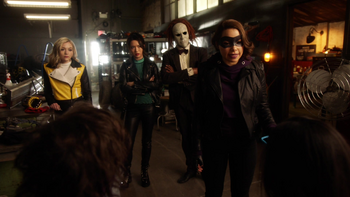 This episode is... it's neat, I guess? Nora calls in a trio of villains -- Rag Doll, Bug-Eyed Bandit and Weather Witch -- and begin to call the group the "Junior Rogues", recruiting them to help her rob STAR Labs and McCulloch Technologies for some technobabble, with the excuse that she's really, really pissed off at her partner, the Flash. And, of course, Nora's just faking it, 'using' the Rogues as patsies while she raided McCulloch Technologies for a certain piece of technology that's going to be useful to fight Cicada. Because Cicada is still relevant.