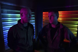 Fitz and Enoch go through a relatively mundane attempt of trying to earn enough funds on Kitson with a single coin in order to get enough funds to buy a ship and return to our corner of the galaxy, all the while good old robot Enoch is trying to affirm that he is Fitz's "best friend". Again, it's nothing particularly new or refreshing in sci-fi stuff, but it's still executed remarkably well, and between Enoch being flabbergasted at being ripped off by a gambler that's faking things, to the casual lines like suggesting they work at the brothels or the casual revelation of using Fitz himself as collateral in one of their games, it's a pretty fun moment. Enoch's progression from basically just a confident robot analytical buddy that's eager to impress, to the shocked innocence when he was fooled, to finally utter depression when he mutters about how he has lost all value as a Chromicron... some hilarious stuff here.