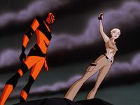 Bruce manages to take the hypnotized Terry out with his cane, and ends up figuring out Spellbinder's real identity. We then have the third-act fight, with Spellbinder zapping Batman into seeing zombies and whatnot, but Bruce basically helps Terry see through the illusions and tell him to punch where Spellbinder actually is. And... honestly, the fight's all right, if a bit anticlimactic. And overall, the episode itself is a pretty solid villain-of-the-week outing, but it's one that could've been done so much better and had a better unifying theme as far as integrating Spellbinder as a personal threat goes. It's still a pretty solid one, though, and the fun visuals and the design of Spellbinder's suit in general are all pretty dang slick.