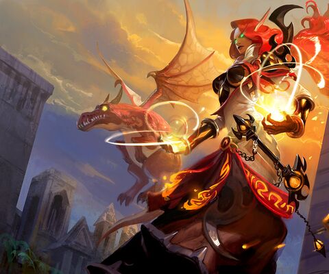 Brightwing was one of the new characters introduced with the Heroes of the Storm MOBA game, representing the Faerie Dragon race. Like Lunara, she was retroactively added into World of Warcraft during the Legion expansion. She's found in the Emerald Dreamway, and is part of a druid class quest where the player character, at that point the Archdruid of the Cenarion Circle, encountered Brightwing. To earn her trust and recruit her as a champion, the archdruid had to plant dream seeds, collect refined water and recover a pendant, in order to make her happy. In Heroes of the Storm, Brightwing is characterized as a surprisingly chipper and happy little fairy dragon... with a surprisingly sadistic streak, as seen in many of her voice lines and her character trailer. She alternates between being happy to make friends and noting about how friendship is 'delicious', and is easily one of the best-written characters in Heroes of the Storm. Her two voice lines in Hearthstone is taken from Heroes of the Storm, namely when you view her in the shop ("We are friends now! Hello, friend!") and one of her possible attack lines ("ouchie time!").