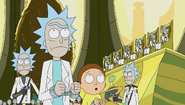 Our Rick and Morty (of dimension C-137) are brought up before the Council of Ricks, six Ricks who stand in a courtroom with wacky hairdos, while our Rick explains to our Morty about the whole concept of Ricktopia, a place where a whole ton of alternate Ricks and Morties have gotten together to create their own utopia. The entire place is policed by Ricks, and other Ricks are there to do jobs like, well, selling items. Like replacement Morties. And C-137 Rick is held in front of the court for being a 'rogue' who refuses to cooperate with the other Ricks since he refuses to be part of Ricktopia, and they blame him for the murders of a bunch of other Ricks in the multi-verse... which, apparently, was something we witnessed in the cold opening.
