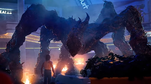 And as the Mind Flayer is about to eat Eleven... Lucas unleashes a fuck ton of explosives onto the Mind Flayer, helped by the rest of the teenagers as they station themselves on different parts of the mall. It's cheesy, it's awesome, and everyone got to say a one-liner or two. This buys enough time for Eleven to recall Billy's happy childhood memories, tell those to Billy, and ends up breaking Billy's mind control long enough for him to basically rise up against his abuser. The Mind Flayer might not be the same asshole father that's been beating Billy all his life, but I guess that's the point of this scene, that Billy manages to rise up against an abuser, and redeem himself by distracting the Flayer long enough? He does get stabbed like six times with gigantic fleshy tentacles, though.