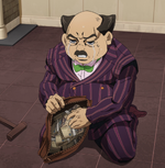 And... and that's technically the end of Vento Aureo's present-day storyline, but we still have one and a half episode to go on. And we return to the past, to the pre-Giorno team, where Mista pontificates and talks a lot of shit about how the best-tasting meat are the meat from herbivores, whereas carnivorous meat tastes like shit, so most human meat wouldn't taste great. This absolutely feels like one of those random conversations that Araki draws from some book he read one time or whatever. We also get the timeframe that this is around the time that Giorno killed Leaky-Eyed Luca. Then Bucciarati enters, and in perhaps one of the most actual Godfather-y scenes in this entire supposedly mafia-themed part, we get some random florist begging Bucciarati for a favour, kneeling down before him and bringing a lot of money, asking Bucciarati to look into the strange circumstances behind his daughter's death. The florist blames the daughter's sculptor boyfriend, while Bucciarati basically tells the upstanding citizen to not get involved with them if he's been an upstanding citizen that pays taxes, again, showing just how much Bucciarati actually cares for the people around him. He's a hero of the people, y'know? But while Bucciarati believes that such matters should be left with the police, he believes the grieving father's statement enough to investigate the boyfriend. "If he really is the murderer, cripple him for four or five years, then leave it to the police". Again, some great mafioso stuff here.