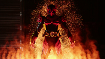 - Aruto uses all of the sub-forms he has access to in this episode, and notably, he uses Flying Falcon, Flaming Tiger and Rising Hopper, which, of course, is the three animals that form the basic Taka-Tora-Batta combo of Kamen Rider OOO. He even strikes a very OOO-esque pose after defeating the Vicarya Magia.