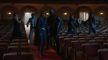 A new season for Supergirl, and... one that's pretty interesting? The season premiere for season five seemed to also double as a bit of an epilogue over some of the storylines of the previous season, and... it's sort of kind of... just there. We get some build-up of what I assume is going to be our main villain for the week, Ma'alefa'ak, released/summoned by the Monitor in one of the post-finale teasers at the end of season four, although Ma'alefa'ak spends a good chunk of this episode disguised as a creepy little girl, and for the most part just hides in the background and unleashes an old enemy of J'onn, a bland superpowered alien called Midnight, to serve as the villain of the week. The action scenes are... all right, if kind of samey. Midnight has nearly no personality, her powers are vaguely defined (and mostly involves a bizarre black hole CGI sequence that felt so much less impressive in comparison to this year's Flash's season premiere's CGI black hole) and she just mostly exists to make sure there's some action in this episode.Oh, and also, we get a fun series of sequence as Supergirl's cape gets fucked-up in the first half of the episode, leading to Brainiac making a brand-new suit for Kara, activated by her taking off her glasses, and the sheer glee of Melissa Benoist going "pants!" is hilarious. Personally I vastly prefer the older suit -- but apparently the real reason they made this change is that it's more easier to film and it's a lot less colder for Meliisa Benoist to act in? I'm not going to really comment to much about it.