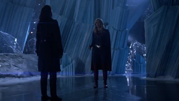 Of course, Lena seems to be... losing her subtlety a bit? We get passive-aggressive moments between her and Kara throughout the episode, which Lena passes off as a rib on Kara's oh-so-excellent acting skills, but you can totally tell that Lena's pretty pissed about that whole "think I'm crashing in a plane crash" thing from last season. She spins Leviathan's attack on her to get Kara to invite her to the Fortress of Solitude, a location that we actually hear Lena speculate exists a couple of episodes back, ostensibly to get one of Lex Luthor's confiscated weapons.