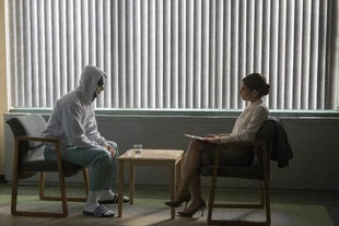 And... and there's something to be said about slow pacing, y'know? I get it. Some Netflix shows really thrive when they're allowed to do things like this, to take advantage that the audience is going to most likely binge an entire season within a couple of sittings, and you can get away with having a bunch of slower episodes since the audience isn't going to be bored, since they're able to get to the exciting bits of the season in short order. But "Fight or Flight" is just there. I absolutely agree that we needed a bit more bonding time between the Punisher and spunky mysterious teenage girl Rachel to have their grizzled-badass/troubled-child bond feel genuine, but at the same time you could do that without being so bland, y'know? The acting is great, both Jon Bernthal and Giorgia Whigham are great to watch, but the scenes about them are just so dull and repetitive. We kind of get it, Frank's a grumpy father figure that's not going to harm Rachel, Rachel's trying to get away from the scary murdery man, but Frank's pragmatic and not stupid. Oh, and there's an obligatorily uncomfortable long "look at how realistic this show is by showing gritty and completely unrealistic ways to deal with a gunshot wound" scene that Netflix-Marvel shows really love. There's a fair bit of drama at the motel, Frank and Rachel try to figure each other out by just talking in said motel, and then we need to get to our action quota of the episode around three-fourths in, there's a rather unspectacular shooty-shoot, Rachel tries to escape and they both get arrested. None of the banter is especially dramatic or witty, just... competent. The dynamic between Frank and Rachel is just there, again, well-written enough to make sense, but not quite as organic as it could've been. The B-plots are also relatively pretty bland. Billy Russo's got a fragmented memory and using jigsaw puzzles as a metaphor with his psychiatrist to put his mind together, because his comic book counterpart is a supervillain called Jigsaw, get it? Also, Madani thinks he's lying and also traumatized by naked Ben Barnes having sex with her. Okay sure. Meanwhile, creepy new villain the Pilgrim (who isn't named yet, but I'm not going to call him "creepy new villain" every episode) is dropping heavy-handed religious metaphors and is slowly tracking down Frank and Rachel, threatening the poor nice bartender lady that survived that first episode's shootout. None of these characters are interesting -- Madani being possibly the most boring member of the first season's main characters, but crazy amnesiac Billy Russo asking for Tylenol and vague mysterious man doing mysterious things aren't really enough to justify the 50-minute runtime.