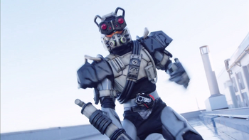 That is, until the expected Raider attack happens, and this time it's the panda raider with a big-ass rifle, who creates a massive explosion with his big-ass rifle and creates an actual fire, before using his rifle as basically a rocket to zip away from the scene. The little competition ends up into an actual rescue, and 119nosuke's Humagear faults end up showing a bit of a flaw -- he can quickly detect humans in the rubble, but as a robot, he basically ignores someone going into cardiac arrest as a person that's already dead and not worthy of rescuing, without at least trying. Homura absolutely lays onto 119nosuke for that later on, telling him that a firefighter should not give up until he's tried to save everyone and stuff. There's something to be said about triaging, but the fact that 119nosuke was straight-up ignoring the dude without trying to attempt to rescue him is definitely the sort of detached, unemotional decision that I could see a robot making.