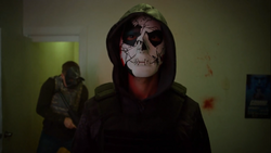 The episode basically spends a chunk of its first half with action scenes, where Frank and Billy and Curtis shoot at each other and Billy goes even more crazy with shooting people with that insane assault rifle of his, before his buddies drag him away to their hideout. And then a good chunk of this episode is spent around Billy, as he's starting to question why the fuck would his closer-than-brothers buddy, Frank, be the Punisher and the skull he sees in his nightmares. Interestingly, this means that Billy Russo himself ends up trying to figure out what makes Frank hate him so much, and, again, why Billy himself is so vile of a villain in the first season. He flips out and kills the two members of his little Valhalla* Army that questions him, before running off on his own. And Ben Barnes is a fantastic actor, but a lot of his scenes basically have him bounce off the terribly uninteresting Dr. Dumont.