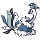 Fafurr is an adorable little dog-deer thing whose body is like fifty percent a fluffy white cloak. It's adorable, and I love that you can't see his eyes. Fafurr evolves into the Ice/Dragon Fafninter, which doesn't really look too much like a traditional dragon, but I can kind of see it, sort of? Sure, it does look more like a huge, mammoth-deer with snow leopard fur, but I suppose any creature that combines a sufficient amount of different animals together can be classified as a dragon.