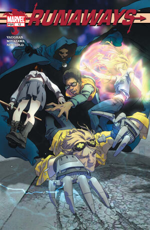 • The whole "Alex with all the powers of the Runaways combined" dream that Tandy detects within Alex is actually a plot twist that happens in the comics, when at the climax of the very first Runaways storyline it's revealed that Alex has been the PRIDE mole all the while, and ended up briefly taking over all of the powers of the other Runaways.