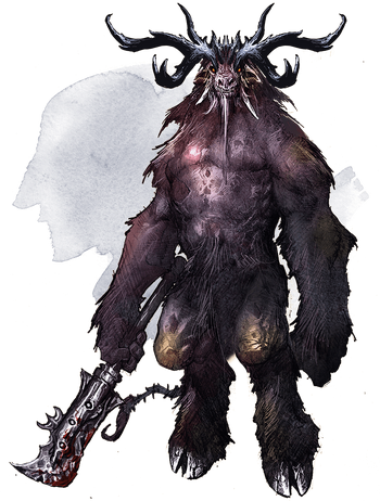 Now where the demons have Demon Lords, devils have Archdevils, the mightiest lords and dukes that serve atop the strict hierarchy of the lawful evil empire of the Nine Hells, and just like a real-world corporation, names rise and fall. And while I only have the 3.5E sourcebook on hand to check, I do know that devils tended to receive a fair bit less spotlight than demons, and other than the big honcho Asmodeus himself, the archdevils that tended to be spotlighted differ from edition to edition. Duke Bael (not to be confused with Bel) is a name that's shown up a couple of times, though, and in 5E... he, uh, kind of looks like a generic minotaur? It sure is a cool artwork for Bael, but without the context I would've assumed that this is just a minotaur adventurer. Bael's a vassal to the Archdevil Mammon, Lord of the Third Layer, and leads 66 companies of Barbazus (Barbazi?), and apparently he's so dang effective that he's never lost his job. It's just that he's a simple, loyal soldier in an environment where it's 99% politics, so Bael ends up finding himself out of touch, all he wants to do is to be a good general and go protect Mammon's territory and enslave all his enemies. He's not dumb, but I get the vibe that he just doesn't give a shit about the backstabbing and constant scrabbling for position, all he wants to do is do his job and these damn mortals keep worshiping him and asking to make deals with him. Also, according to 5E, apparently Bael has a cult, but even among members of his cult Bael's appearance and deeds are hotly debated, with some claiming that Bael looks like a toad or a cat. Apparently, though, he's a cow-man.