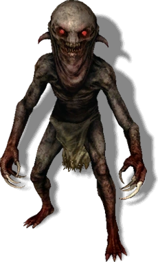 Not being drawn from any creature in the novels specifically, the Nekker seems to draw its inspiration or name from a Germanic/Scandinavian mythological creature called the Neck, known in various different cultures as the Näck, Nøkken, Nixie, Nekker, Nikker or various different variations depending on the culture. But in all versions of the mythological Neck, they have always been water spirits or mermaid/mermen of a sort, so the Witcher games' Nekker seems to just draw nothing but the name. The Nekkers make their debut in Witcher 2 and are basically the game's most common monsters, although they show up mostly in caves and forests, or in little anthill-like cave-mounds that the game asks you to blow up with makeshift grenades. They're... they're just ugly ghoul-like humanoids with glowing red eyes and sharp claws. Looking closely at the model, they have a huge, bulging 'neck' that is where their names come from, but most of the time you fight Nekkers in Witcher 2 and Witcher 3, they move so quickly and in the dark that you just see vague angry humanoids with spooky red eyes.