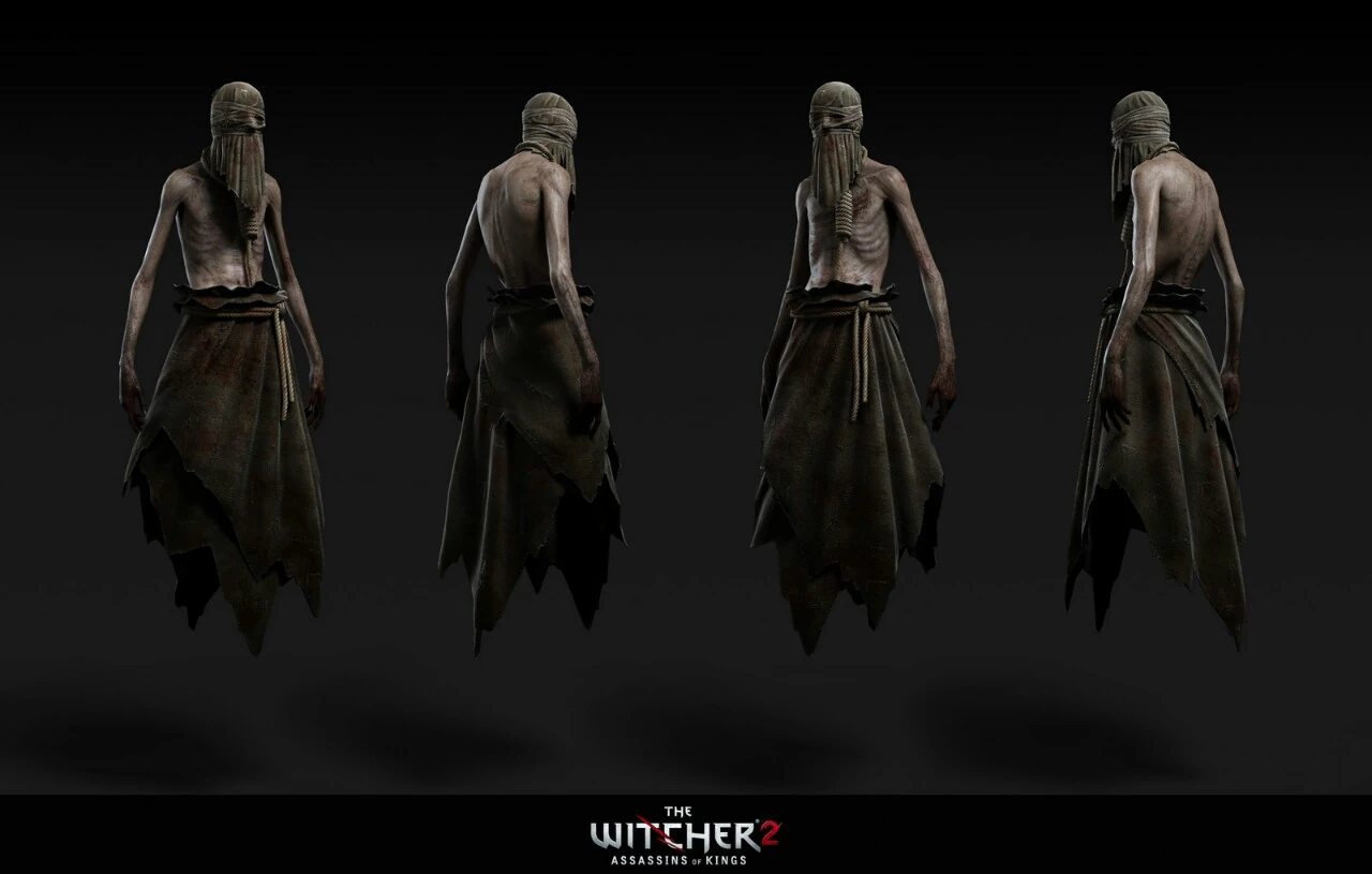 Drowners are one of the staples of the video game series, appearing in all three games and loosely based on the Utopiec in the novels, itself based on a monster of the same name from Slavic mythology. Both the myhtological utopiec (from what I can find online, anyway) and the Drowner are basically restless spirits of the dead who drowned, rising up from their graves to haunt the living and basically drag them down to drown with them. The Drowners are not that overly complex as enemies in terms of lore or design, and in the Witcher series, they are classified as a 'Necrophage', which... basically means zombies that eat the dead, I guess. As their name implies, Drowners are always found near rivers, lakes and swamps. They're pretty simple to wrap your heads around, rising from a specific brutal death and being basically gaunt blue-skinned ambulatory corpses. In the first Witcher game they had fishmen gills, but I suppose they did away with it in the second and third games to match the actual mythological creature a bit better. Most of these monsters are absolutely no threat to Geralt (since he's a mutant with enhanced strength, magical items and spellcasting abilities) when it's a one-on-one battle, but they can be more than a nuisance when there are a lot of them. As you progress in the game, stronger Drowners, called "Drowned Dead", will show up with them as elite enemies. Not a whole ton to say here, but they do set the basic mood of most of the monsters in the Witcher series, which really have a lot of classic folklore vibe to them.