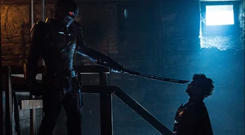 And then, when the final act comes... Dick sort of betrays everyone by taking everything into his own hands, and goes off to confront Deathstroke solo. Which is stupid, but pretty on-brand for the Dick/Slade relationship from the comics. It's just that arriving without weapons or a suit, and thinking that Slade would just make the trade ends up backfiring, and only Kory pre-empting Slade ends up saving Dick from certain death. Perhaps for the first time this season the action scene is genuinely cool to watch and doesn't end too quickly, with the close-combat scene between Deathstroke, Dick and Kory being pretty fun.