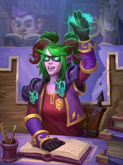 Star Student Stelina, Mozaki the Master Duelist and Ace Hunter Kreen are all original to Hearthstone. Again, night elves were not wide-spread in the Eastern continent until near the end of the Third War, and demon hunters don't become widespread until all the way to Legion. Note that Ace Hunter Kreen is a tribute to real-life 2018/2019 Hearthstone world champion Hunterace.
