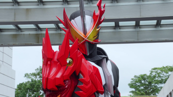 - Kamen Rider Saber's design is... it's all right. It looks different for sure, like someone took Ryuki and Faiz and smooshed them together with the Double aesthetic in mind. I don't dislike it (though the eye-flames are just a mite too tacky). I do like the colours, and the half-trenchcoat deal he has going on. It'll just take some getting used to.