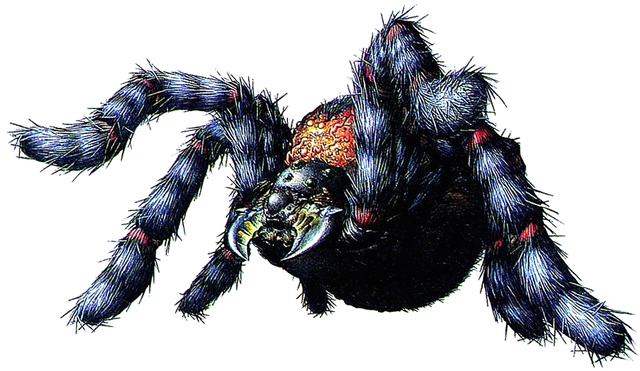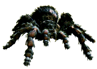 The big mama of the Web Spinners is the Black Tiger, the 'queen' of the spiders in Spencer Mansion. Spiders aren't normally eusocial animals (tarantulas certainly aren't) but this isn't the first time that fantasy spiders have the same 'queen' layout as ants or bees. The Black Tiger is even bigger than a regular Web Spinner, and is an escaped B.O.W. that was single-handedly (eight-handedly?) responsible for the Web Spinners that are wandering around the mansion despite the B.O.W. type supposedly being discontinued. Unlike its offspring, the Black Tiger is actually able to spin webs. In the remakes, the Black Tiger is apparently modelled after the Australian Funnel-Web, which is one of the few actual species of spiders whose venom can be deadly to humans. Neat!