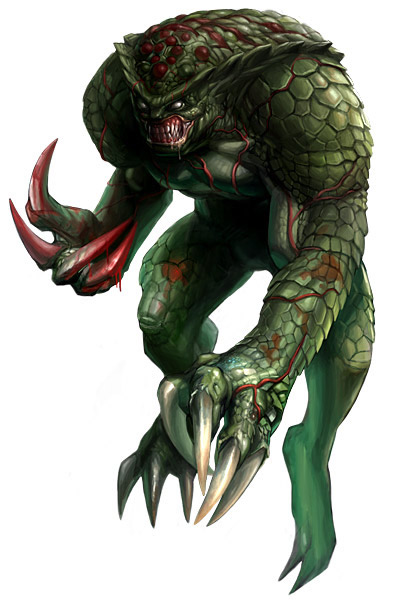 And I do like this design a bit. Very understated compared to other more iconic Resident Evil monsters like the Licker or the Tyrant, but I do really like how, despite looking monstrous, the Hunter Alpha does look like a completed creature. The game's lore notes that Hunter Alphas are created by injecting reptile DNA and the T-Virus into a human embryo, turning it into, well, a cunningly intelligent -- and more importantly, controllable -- minion for the Umbrella Corporation. After the creation, the successful Hunter Alpha was cloned and essentially trained to become weapons for the Umberlla Facility. They sort of act like mini-bosses, displaying what Umbrella's end-goal ultimately is. Creating these sort of mutated super-humans to be controlled and used in warfare to explicitly tear and rend humans apart. In-game, the Hunters actually show up halfway through your journey through the mansion and essentially replace the zombies, being far, far more deadly and agile than the shambling zombos.