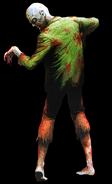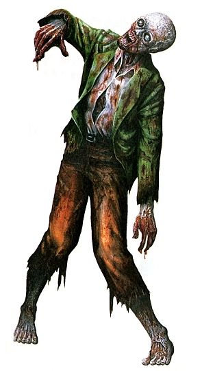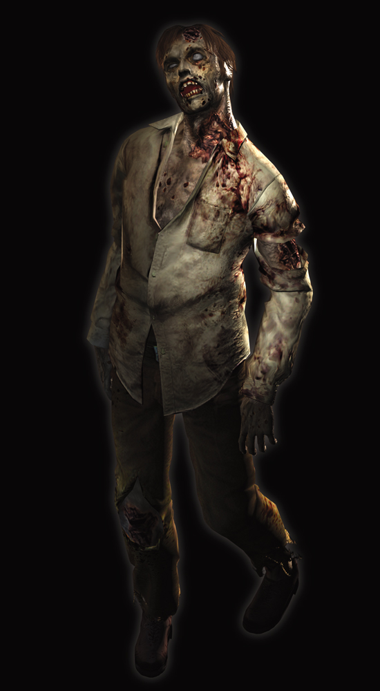 The game's more sci-fi virus leanings sort of alternate on whether the T-Virus zombies kills the host and turns them into reanimated corpses, or if they infect a human and basically sort of take control of them while causing external changes like the rotting flesh and the cannibalistic urges, making them alive but non-sentient. Either way, though, there's really no saving these wretched bastards. Thanks to the virus turning living humans into bioweapons, they are super-durable and can take abnormal amounts of punishment unless you go for the head and blow it up.