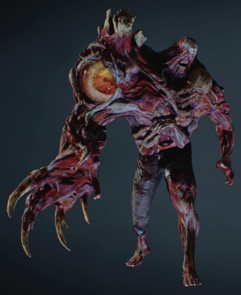 I don't think this guy ever got an official name and I've seen it be called "Evolved Licker", "Modified Licker", "Mutated Licker" and other things. They appeared n the Umbrella Lab segment only in the original game, you find out that the Lickers there have big-ass giant claws instead of hands. I really don't have much to say here, it does add a fair bit of variety but it's not too different from regular Lickers other than looking just a bit meaner. I like the variety, but I must say that I prefer the original Licker with clawed hands a lot more than this one. I kinda wished that we did get an 'enhanced' Licker in the remake in some way. More variety is better than less variety, after all, but I can understand the reason why they cut this out, to keep 'The Licker' as being the iconic symbol that it was in RE:2.