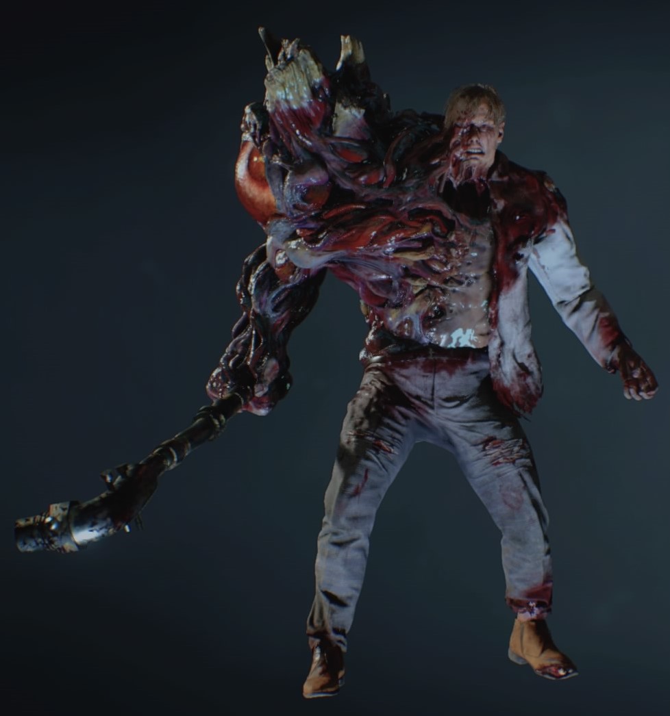 Hoo boy, and here we go with "G", the recurring boss of the game, and the start of a glorious tradition of Resident Evil bosses being multi-phase ever-transforming, ever-evolving monstrosities (that, as Birkin establishes here, usually ends up as a big glob). Birkin goes through multiple transformations and multiple boss fights as your characters encounter him at various stages of his own story, and neither Leon nor Claire fight all five of his forms (his final form, I believe, is only fought as the 'true' final boss after you beat the game with Leon and Claire in any order). We've talked about dr. William Birkin up above in the synopsis and I really don't want to spoil myself too much about his story role. He sure is a mad scientist.