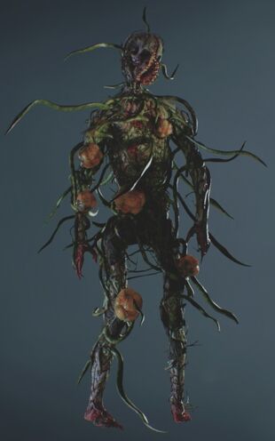Okay, this one is cool. Originally I just dismissed this as 'oh, it's just a smaller, single-stem version of Plant 42, cool, I like plant monsters'. That is, until I actually take a good look at the design and realize that both artworks shows Ivy here shambling on a vaguely humanoid body with two clear defined legs and a hunchbacks, and those bud-like flowers form 'arms' and the huge mouth-like flower is, well, the head. It's so cool that Ivy actually has a humanoid form but is so plant-like that it actually did fool me into thinking that it's just a cluster of plant vines surrounding a carnivorous flower. The multi-petal plant maw is also very cool, for sure. As with many other creatures here, Ivy's other name, Plant 43, tells us that this is basically a creature evolved from what Umbrella could gain from Plant 42 from the first game. Your RE1 protagonists may have blown up the mama plant, but the legacy lives on because Umbrella just wouldn't leave shit alone!