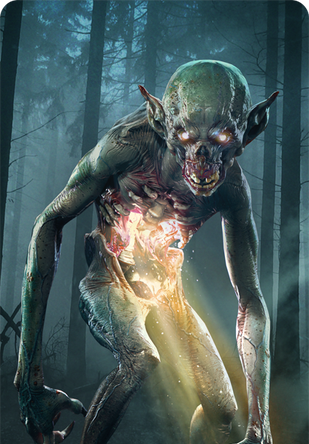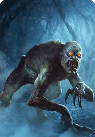 Another returning enemy from Witcher II are the Rotfiends and their more powerful variants, the Devourers. And they're still basically the same with how they behaved in Witcher II, being flayed corpses showing muscles all over, with a bloated, mutated head that's all flabby around their visible mouth. Look at that Gwent art, which really highlights a close-up of a Rotfiend's disgusting heads in full glory. It's noted that Rotfiends and Devourers basically became more and more common as the war spread prior to Witcher III, which is a neat way of explaining why they're so common by the time of Witcher II and Witcher III when they never appeared in the novels or the first game. They sort of behave similarly to ghouls, hunting corpses and sometimes attacking the living, and are deceptively fast despite looking like zombies. And just like in the second game, upon being close to death, the Rotfiend's body will balloon up disgustingly and explode into a gigantic poisonous cloud. Pretty nasty, and I do like that they actually look pretty different from any other enemy in the game.