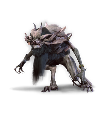 Sort of a palette swap of the Fiend, the Chort (based on a demon from Slavic folklore, later adapted into a minion of Satan by Christianity) looks similar, just swapping the deer-themed head for a ram-themed one. They're also smaller (although still larger than a human), but are just as dangerous. In one sidequest, Geralt actually tries to track down a fiend only to find out that it fought a Chort for territory and the fiend was ripped apart for its troubles. In-universe legends often mistake chorts for sylvans of all things, thinking that they are devilish tricksters that play pranks and are steal cabbage, but real Chorts are, well, rampaging, frothing predators that are just as likely to devour the farmers as their cabbage. In combat they're basically faster, more agile Fiends, albeit without any of the special hypnotism skills that the Fiends have. Not too much for me to say, but it's still a pretty neat enemy.